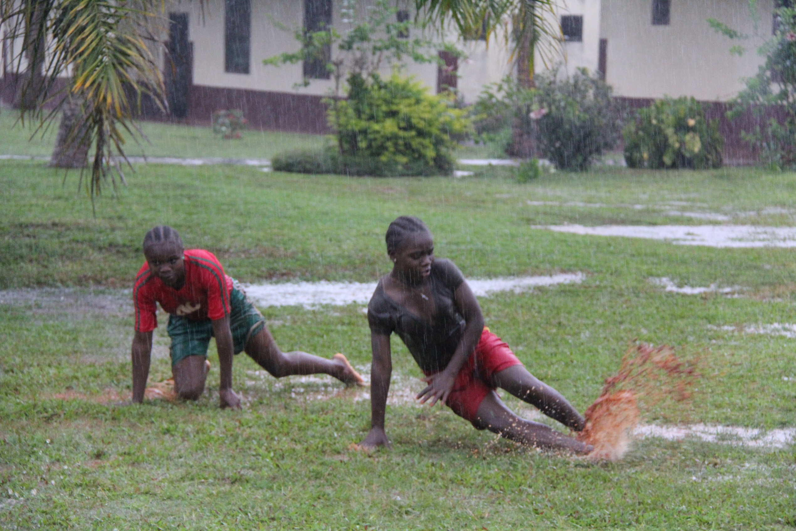 Jedną z rozrywek dzieci jest ślizgawka na trawie po tropikalnej ulewie. Wygląda na to, że to dobra zabawa, ale nie próbowałyśmy;)