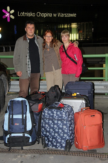 Poniżej Okuliści dla Afryki (dr Iwona Filipecka i Agnieszka Lembowicz) oraz Dentysta w Afryce (dr Konrad Rylski) i nasz bagaż przed odlotem.